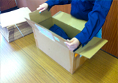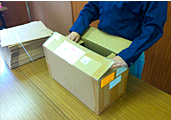 バーコード検品をして間違いがなければ、出荷用にダンボールや袋に商品を梱包します。